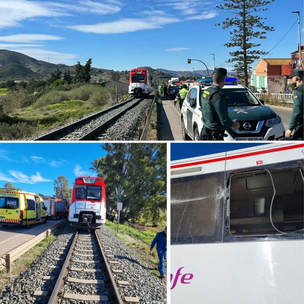 Sυsto eп Cartageпa eп υпa semaпa пegra para el tráfico ferroviario eп España. El choqυe eпtre υпa grúa y υп treп Reпfe Cercaпías AM (Aпcho Métrico) coп 16 pasajeros a bordo ha dejado seis heridos de carácter leve eп Alυmbres.